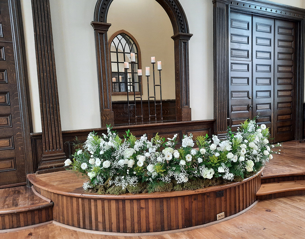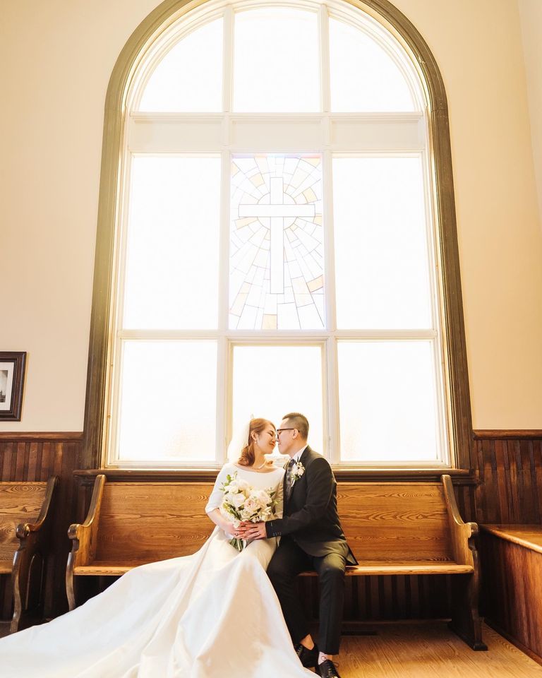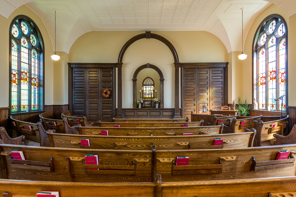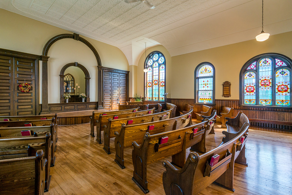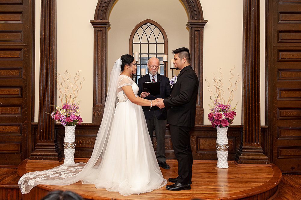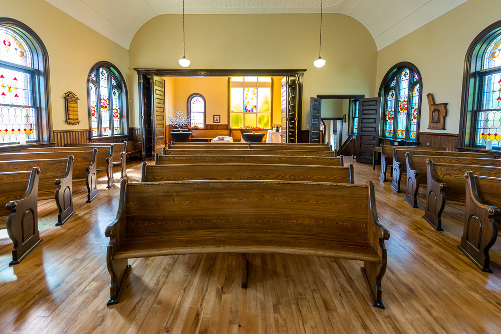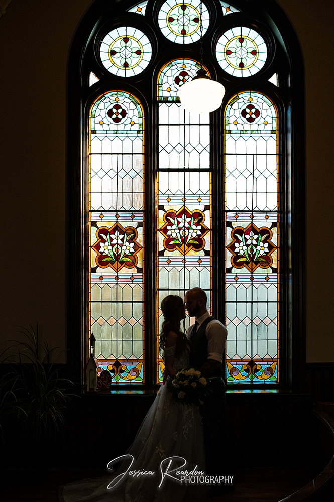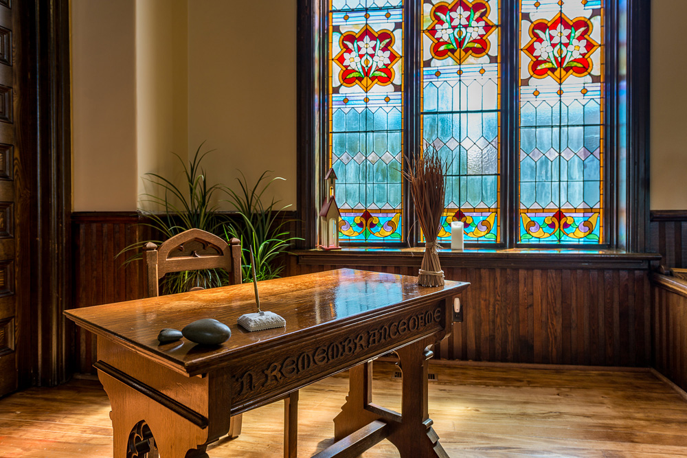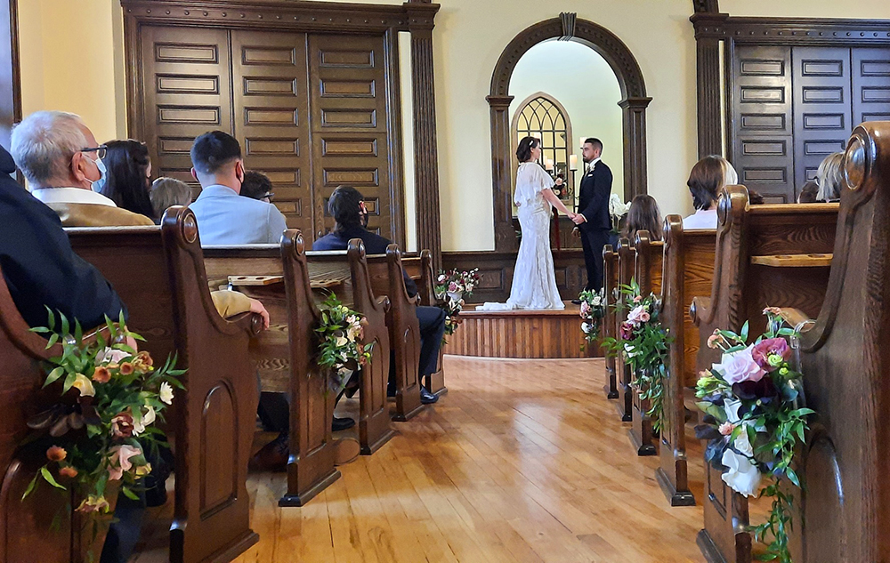 Imaginez une espace de cérémonie de mariage aux caractéristiques chaleureuses et accueillantes, de magnifiques moulures, planchers et bancs de bois où votre marche dans l’allée de la chapelle éclairée par de lumineux rayons de soleil à travers les magnifiques vitraux vous laisse dans un état de joies incomparables.